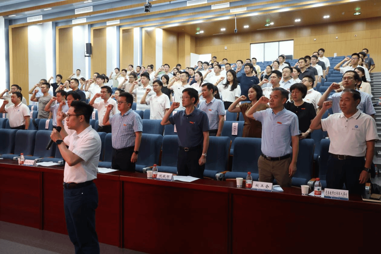 本网讯(通讯员 张舒 顾泽文)7月18日下午,学校在教育综合楼102会议室组织召开2024年教职工入职典礼暨岗前培训(校本研修)开班仪式,75名新进教职工参加本次入职典礼。校党委副书记李志旭,各职能部门、直属单位负责人出席了活动,开班仪式由党委教师工作部部长、人事处处长吕容涛主持。