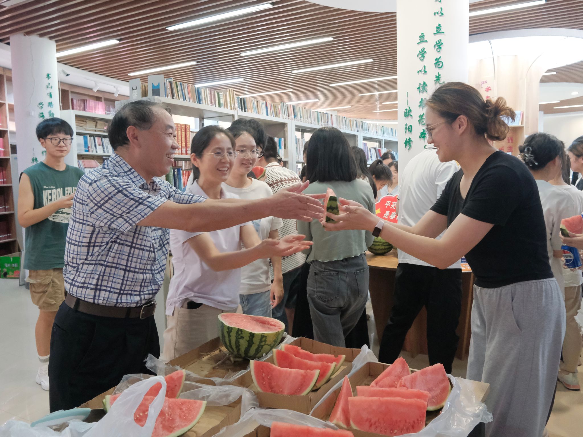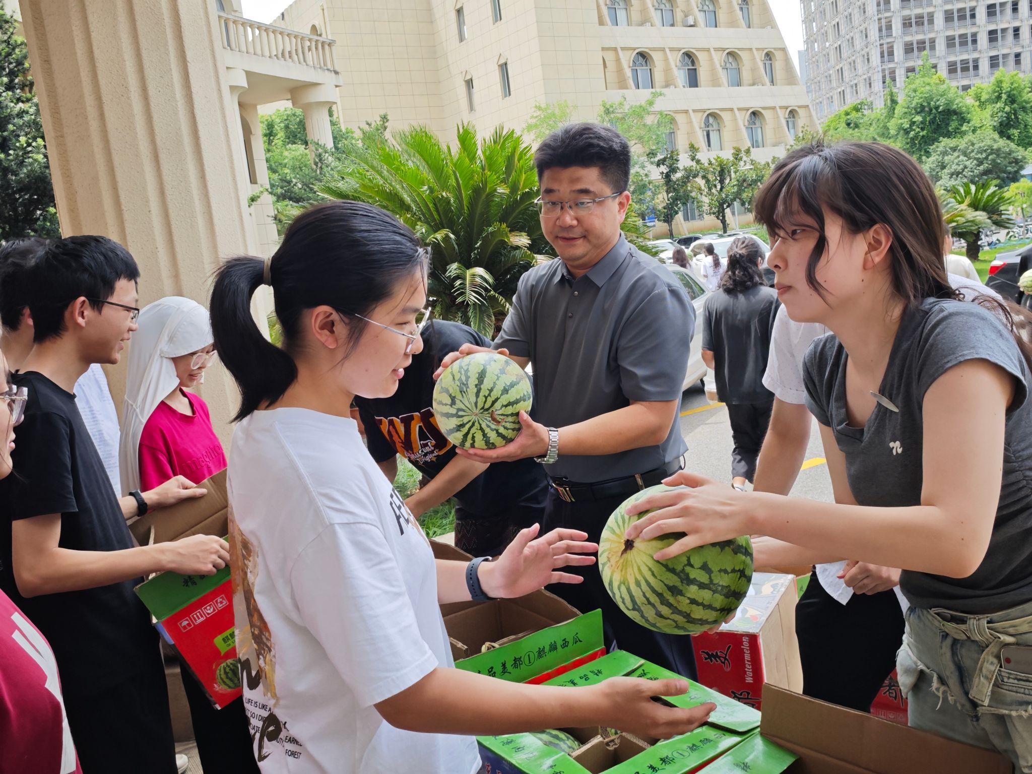 据悉,此次消暑慰问品主要来源于学校基金会募集的校友捐赠物资,唐球校友捐赠三万斤热带水果慰问母校一线教工和暑期留校学生,体现了对母校的感恩之心和反哺之情。各学院也积极响应号召,通过走访宿舍、考研复习教室、实验室慰问等形式,切实表达了对留校学子的关怀与祝福。针对近日河南、四川、广东等地因强降雨造成洪涝灾害,学工部、研工部紧急发布如遇紧急灾害可向学校申请临时困难补助的通知,各学院及时摸排,对受灾地区学生进行了困难补助与关怀慰问。