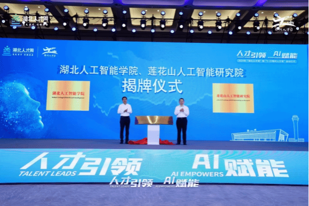 张文兵、朱松纯为湖北人工智能学院揭牌。