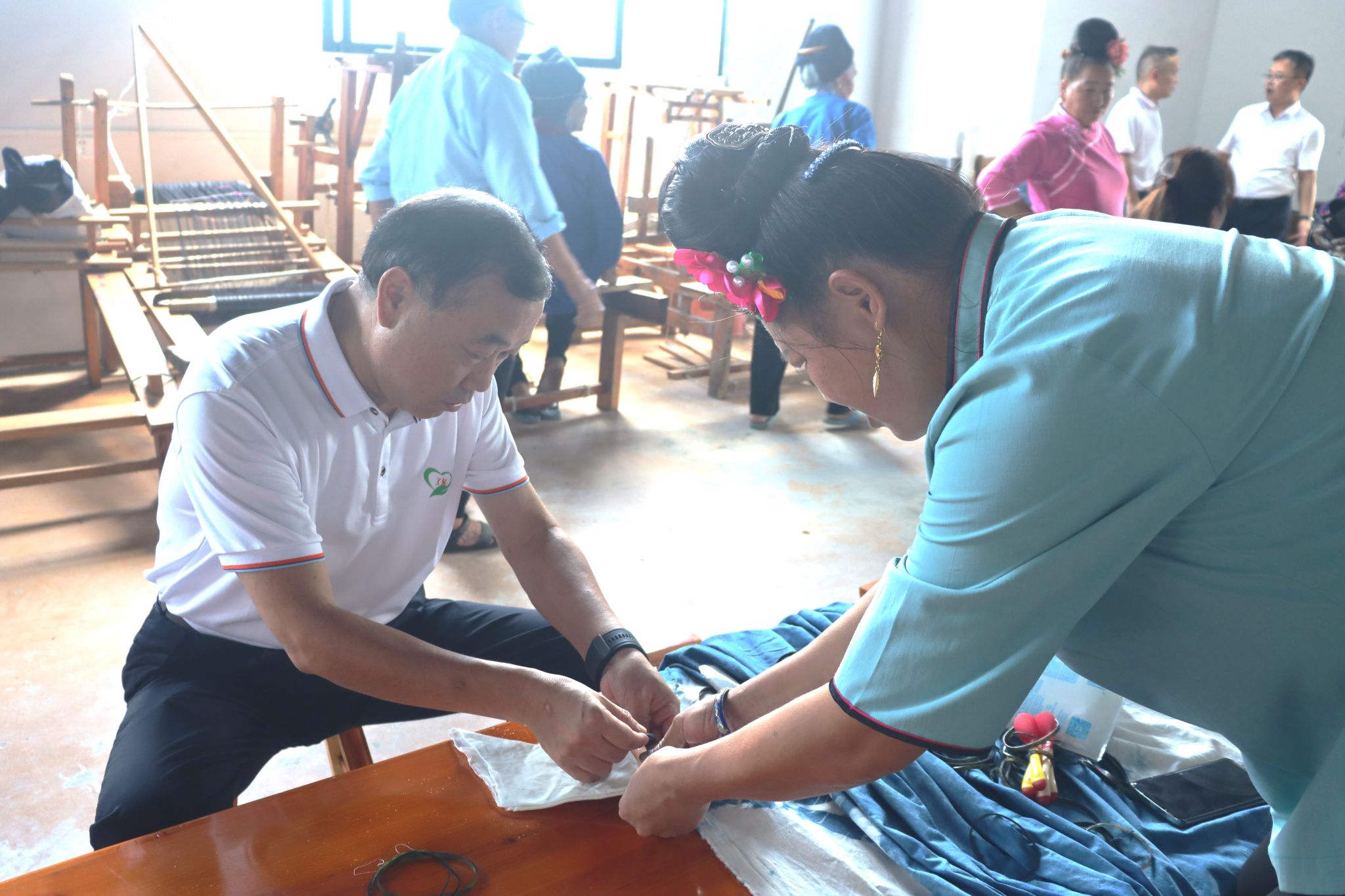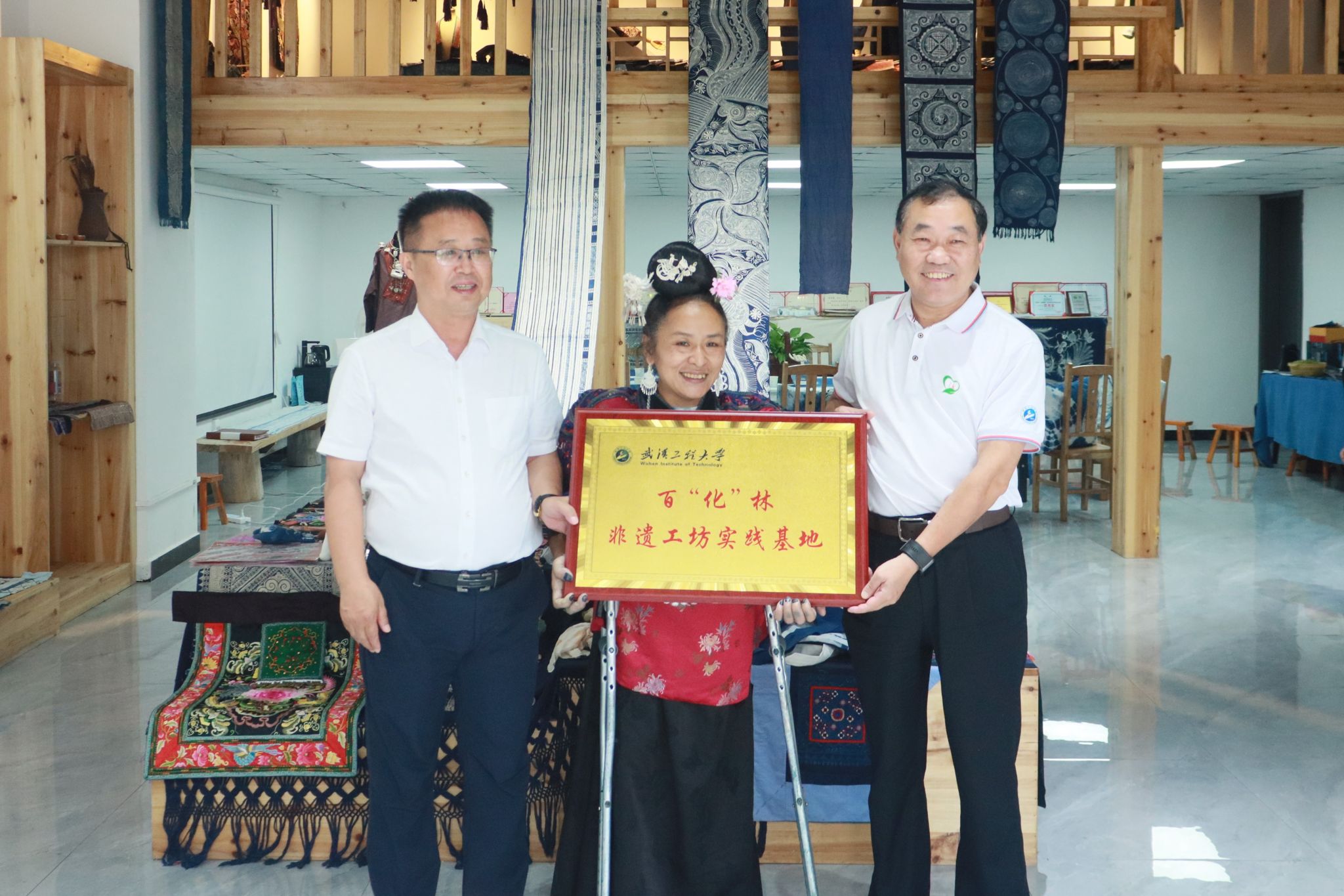 校党委副书记李志旭代表学校为张艳梅苗绣工坊授牌。实践团成员在非遗传承人的指导下,亲自上手体验苗绣编织技艺,在针线交错中感受苗绣文化的非凡魅力。