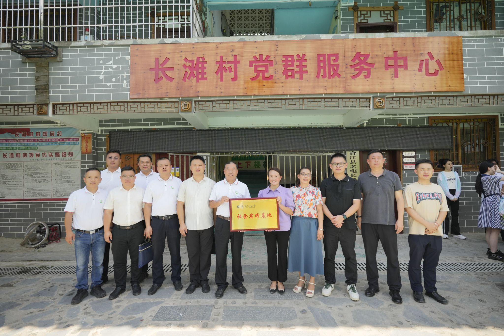 实践团在长滩村挂牌社会实践基地,建立长期合作联系,进一步了解当地非遗文化,共同助力乡村振兴。