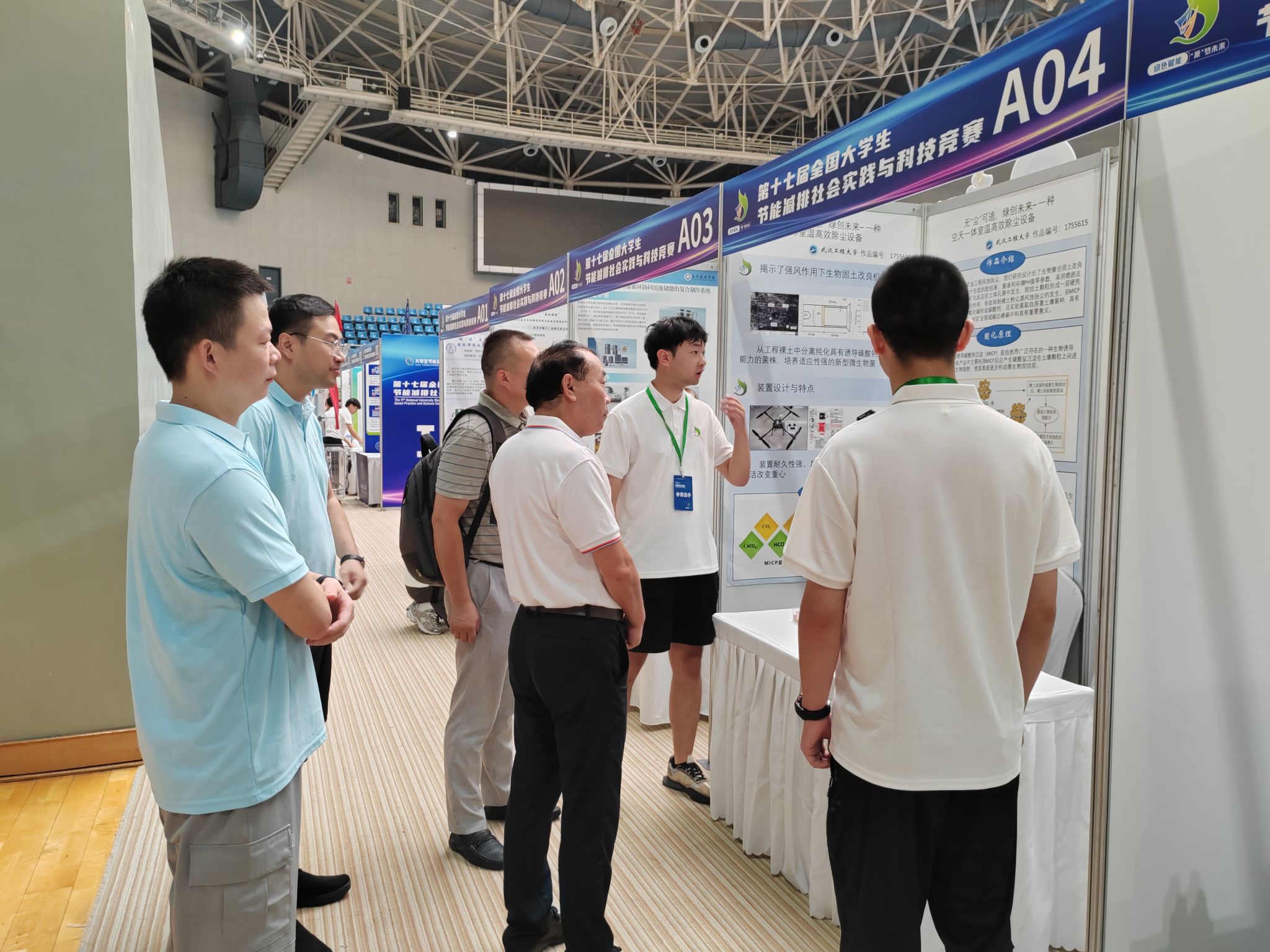 决赛分项目路演和现场答辩两部分进行,校党委副书记李志旭到现场指导各项目布展,听取各项目模拟路演答辩,并为参赛队员加油助力。我校参赛项目主题鲜明、特色突出、准备充分,节能减排效应明显,创新性强,学生现场答辩举止大方、思路清晰,充分展现出工大学子良好精神风貌。