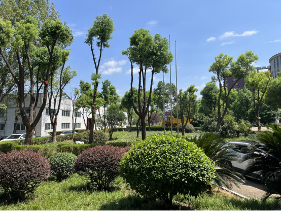 在校园的各个角落,绿化工人冒着炎热,精心修剪枝叶,使树木呈现出更加优美挺拔的姿态;原本参差不齐的灌木变得整齐有型,草坪被修剪得整整齐齐,如绿色的地毯般铺展开来,校园环境更加“舒”心。抗旱保绿更是一场艰苦而持久的战斗,绿化工人不辞辛劳地为每一棵植物浇水、养护,确保它们在炎热的季节里依然能够茁壮成长。