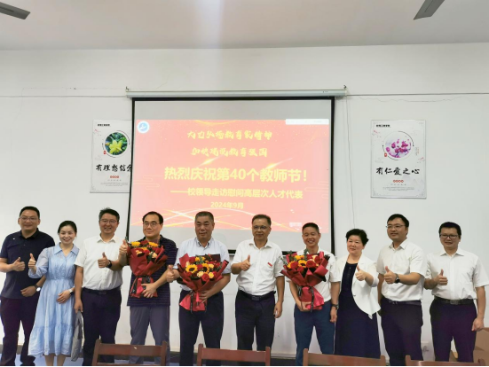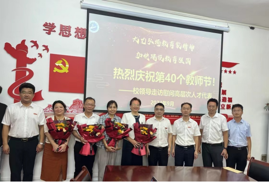 本网讯(通讯员 熊兆胜男)为热烈庆祝第40个教师节,大力弘扬教育家精神,凝聚高层次人才智慧,营造尊师重教氛围,9月9日-10日,校党委书记汪伟,校党委副书记(正厅长级)潘慧明,校党委副书记李志旭,校党委常委、纪委书记方文海,校党委常委、副校长朱青林、喻发全、马小龙、吴云韬,副校长姚槐应,校党委常委、宣传部部长韩高军,校党委常委敖荣军分别带队看望慰问了各学院高层次人才代表。