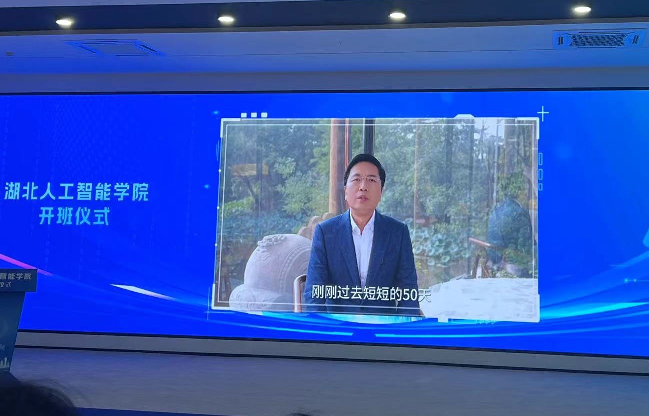 开班式上,湖北人工智能学院首席科学家朱松纯通过视频作开班寄语,希望学院坚持 “首课”就是“首战”,优化课程设计,创新课程讲授方式,在“首创先例”的地方率先做出“成功案例”,打造“湖北人工智能学院”品牌。