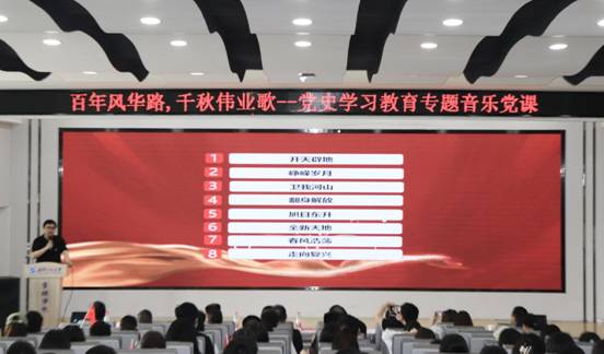 讲授党课是党史学习教育的规定工作。要着力讲好党的故事、革命的故事、英雄的故事,引导师生在党史学习中厚植爱党、爱国、爱社会主义的崇德情怀,进一步增强对马克思主义的信仰、对中国特色社会主义的信念、对中华民族伟大复兴中国梦的信心和为祖国为人民永久奋斗、赤诚奉献的远大理想,自觉把爱国情、强国志、报国行融入到实现中华民族伟大复兴的奋斗当中。讲授音乐党课是党史学习教育的创新动作。开展党史学习教育,既要坚持规定动作不走样,又要保证自选动作有特色。用音乐上党课,用艺术讲政治,就是创新学习方式的一项重要举措,用大家喜闻乐见的形式普及党史知识,推动党史学习教育深入师生、深入基层、深入人心。讲授音乐党课是党史学习教育的亮点动作。开展党史学习教育,既要对标对表,又要推陈出新,要善于结合学院实际,打造亮点活动,提炼活动品牌。音乐党课既是一场精神的洗礼,又是一次思想的升华,要引导师生在经典的红色旋律中汲取历史的营养、增强理想信念、激发前行的动力。