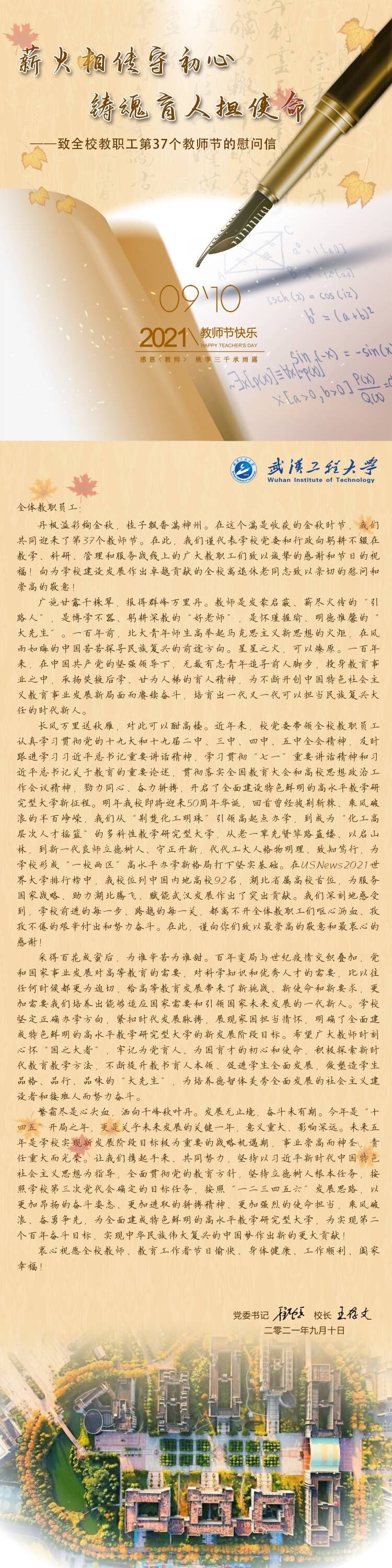 薪火相传守初心 铸魂育人担使命|致全校教职工第37个教师节的慰问信