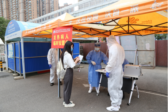工作组一行首先观摩了师生进校身份核验、发热人员转诊、密接人员隔离、楼栋封控以及核酸检测等环节的演练活动。