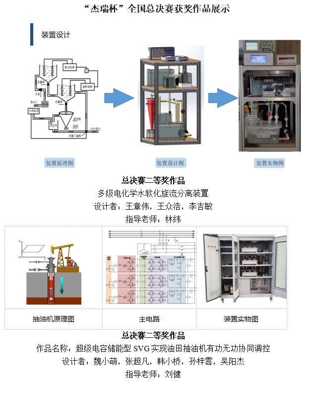 本次“杰瑞杯”第八届中国研究生能源装备创新设计大赛吸引了来自哈尔滨工业大学、中国海洋大学等170所高校,提交作品1261项,参与研究生5339人,创高校数量和参赛人数新高。参赛作品经线上评审、线上分组答辩及“创新之星”答辩三个环节的专家评审,并报大赛组委会表决通过,共有来自147所研究生培养单位参赛队获得一等奖39项,二等奖81项,三等奖235项;优秀组织奖38个,优秀指导教师奖50位。