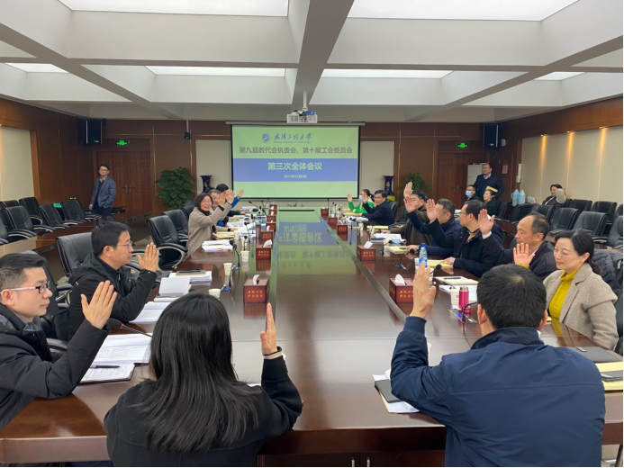 人事处处长鲁晓君、副处长桂展鹏、学生处处长吕容涛、研究生院副院长(正处级)熊伦、教务处处长王海晖、科发院基础研究与高新技术处处长郭琴、教师发展中心主任孙先明等相关职能部门负责人就相关文件内容进行说明。参会的委员们认真研读文件、仔细听取讲解、积极反映教职工的心声,相关职能部门耐心细致给予答复并接纳了多项意见和建议。