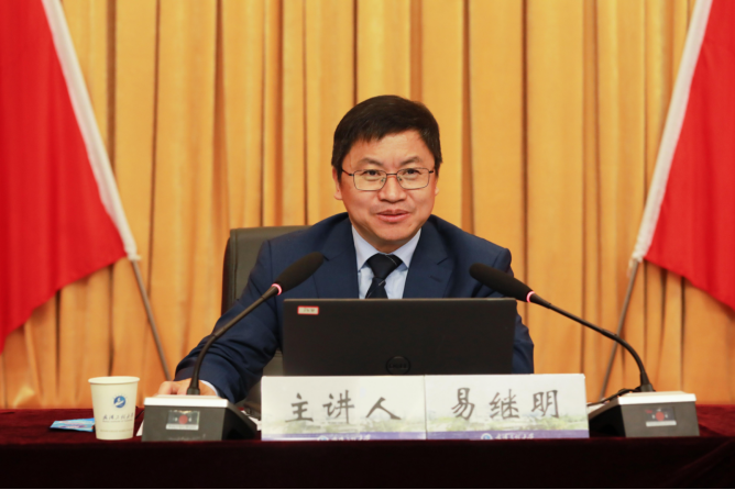 会上,易继明教授以《新时代中国特色知识产权发展之路》为题,结合在中央政治局第二十五次集体学习的讲解经历,国家知识产权强国建设纲要的出台,重点解读了习近平总书记关于全面加强知识产权保护工作、激发创新活力推动构建新发展格局的重要讲话精神,分享了个人学习领会习近平总书记关于全面加强知识产权保护工作重要论述的心得。易继明分别从习近平总书记重要讲话精神、中国特色知识产权发展历程、全面加强知识产权保护的新时代要求、知识产权保护“五大关系”、加强知识产权保护的七项要求、通过知识产权的富强之路等六个方面,深入分析了知识产权工作对国家发展的重要意义及做好现阶段知识产权工作的现实意义。