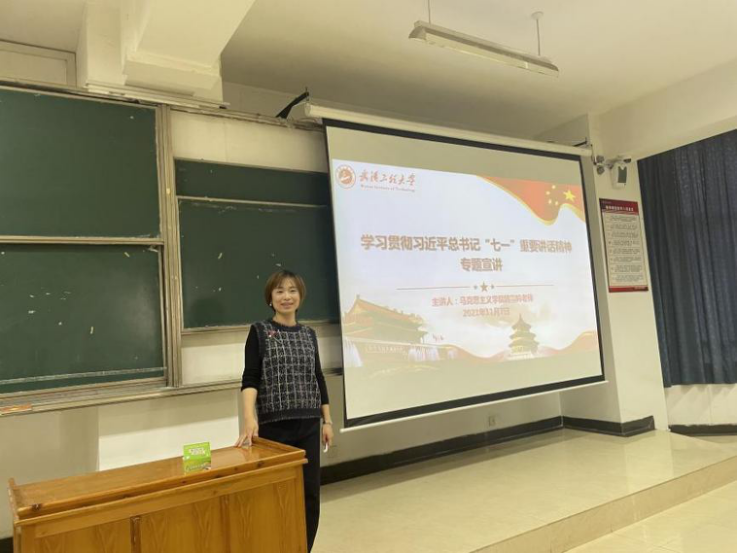 化学与环境工程学院邀请思政导师韩雪吟老师作“学习贯彻习近平总书记‘七一’重要讲话精神”专题宣讲,从党带领人民书写了中华民族最恢宏的史诗、永远把伟大建党精神继承下去发扬光大、中华民族正以不可阻挡的步伐奋勇前进等三个方面进行了深入细致的阐释和讲解。