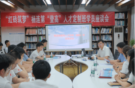 5月24日下午,土木工程与建筑学院在学生一站式服务中心召开“红砖筑梦”杨连第“登高”人才(国际)定制班学员座谈会,校党委常委、宣传部部长韩高军与学员们畅谈理想,规划未来。韩高军感谢中铁十一局长期以来对学校建设发展的支持,肯定校企合作取得的良好成效,他希望 “登高”班学员能够以英雄杨连第为榜样,坚定目标和选择,珍惜机遇与平台,在思想上登高、在品德上登高、在行动上登高,立志做深耕土建行业堪当民族复兴大任的“大国工匠”。