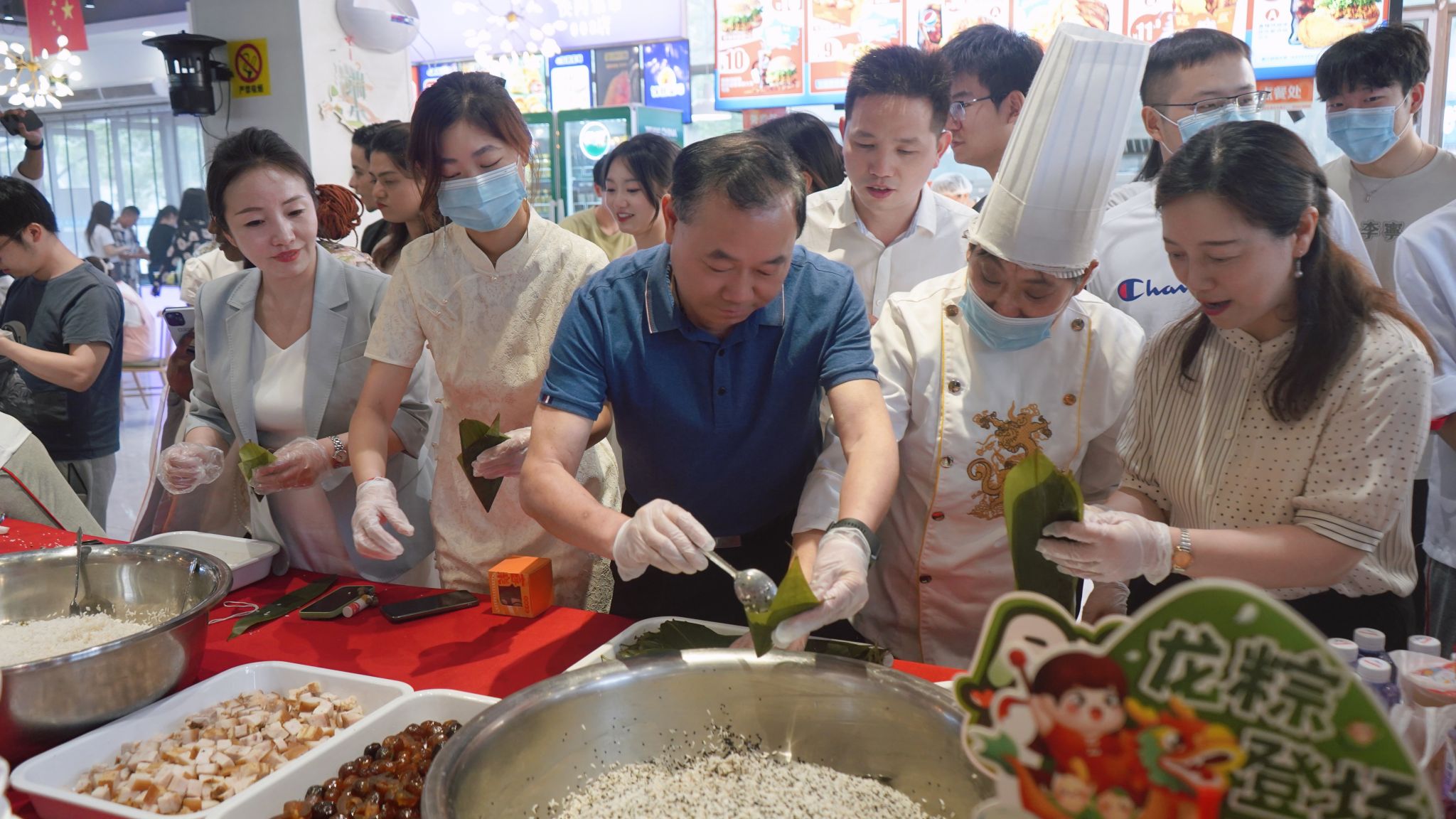 本网讯(通讯员 梁春晴 赵家玮)艾草挂户又端阳,但闻米粽竹叶香。6月6日上午,为进一步弘扬中华优秀传统文化,丰富学生校园文化生活,提升学生劳动素养,学校在流芳校区第三食堂举行“情寄端午 粽享劳动”劳动实践活动。校党委副书记李志旭、校党委常委、副校长马小龙,学工部部长严敏、后勤保障处党总支书记贵艳、校团委副书记邓欢以及各学院师生代表参加了此次活动。
