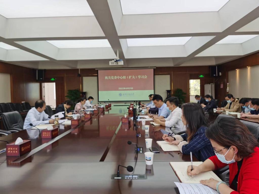 本网讯(通讯员 刘静)4月21日下午,机关党委在钟楼第二会议室召开理论学习中心组(扩大)学习会。校党委副书记郑丹凤出席会议并讲话。机关党委书记郭昕主持会议。