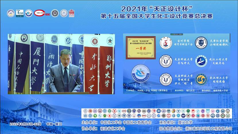 本网讯(通讯员 杨犁)8月22日,由中国化工学会、中国化工教育协会联合主办的2021年“天正设计杯”第十五届全国大学生化工设计竞赛全国总决赛在厦门大学落下帷幕,我校化工与制药学院学生团队荣获一等奖等多项奖励。作为中国化工科技界重量级学科竞赛,本比赛落实教育部“卓越工程师教育培养计划”要求,鼓励化工学子综合运用知识,勇于创新,培养创新思维,提高工程技能和工程设计实践能力。