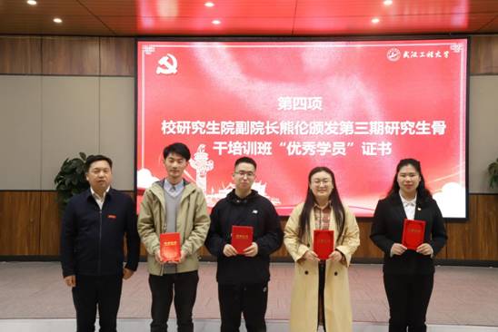 熊伦宣读第三期研究生骨干培训班“优秀学员”名单并为“优秀学员”代表颁发荣誉证书。