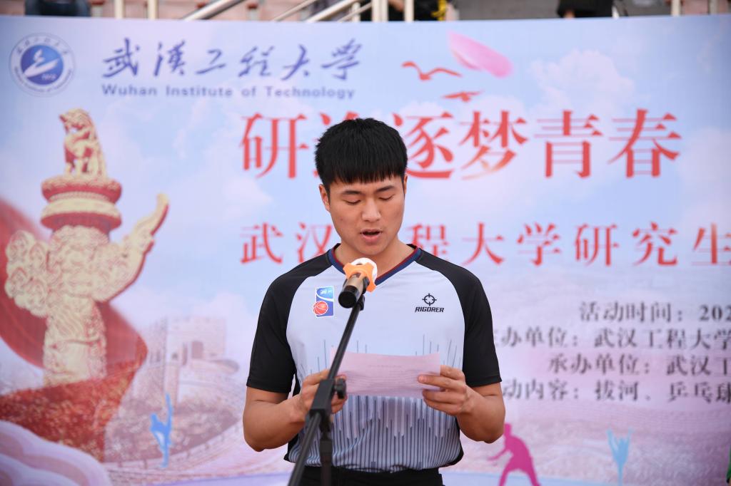 校党委研工部副部长陈俊致开幕词,他指出本次体育文化节旨在贯彻落实全国研究生教育会议精神,推进体育强国建设、弘扬校园体育文化、加强研究生团队协作意识,号召全体研究生在体育锻炼中享受乐趣、增强体质、健全人格,以积极饱满的精神状态迎接中国共产党成立100周年。同时他给学生们提出了三点建议:一是坚持健康第一的教育理念,推进全民健身和全民健康的深度融合,促进研究生的科研工作和体育锻炼协调发展;二是以饱满的激情、昂扬的斗志、勇于拼搏的信念,团结向上的精神投入到比赛中,赛出成绩、赛出水平、赛出新风尚;三是放飞青春梦想,释放青春活力,培养良好自我感知、自我激励,勇于挑战、突破极限、永不服输,为今后成长、成才打下坚实基础。