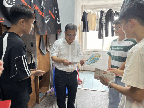 端午将至,潘慧明代表学校为同学们送去粽子,向同学们致以节日慰问。在学生寝室,潘慧明亲切地与学生面对面交谈,围绕专业人才培养、优良学风创建、职业生涯规划等方面,对同学们的学习及人生发展规划进行了悉心指导。他勉励大家要珍惜大学时光,珍惜同窗情谊,团结友爱、互帮互助,共同营造良好的寝室文化氛围。他指出,作为新时代的青年学子,要志存高远、脚踏实地,夯实专业基础,练就真才实学,充分利用现有的学习资源提升综合素质,在工大这片沃土上汲取养分、耕耘理想、充实行囊、再攀高峰!