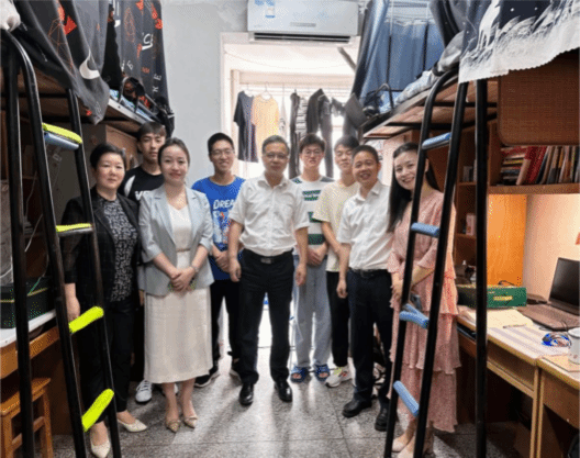 本网讯(通讯员 杨梦瑶 杨星)6月6日,校党委副书记(正厅长级)潘慧明带队深入学生社区走访机电工程学院2023级本科生宿舍,实地了解学生的思想动态、学业进展和生活状况等。党委学工部、武装部部长严敏,机电工程学院党委书记郑玲莉、院长郑小涛、副书记孙丽娜和大一年级辅导员、班主任等陪同走访。