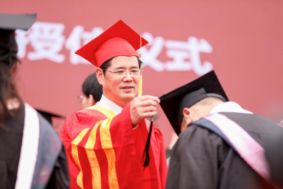 典礼结束后,举行学位授予仪式。学校学位评定委员会主席王存文教授宣读学位授予文件。校学位评定委员会导师团一一为毕业研究生、本科毕业生拨穗授位。