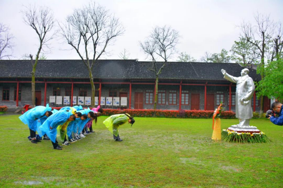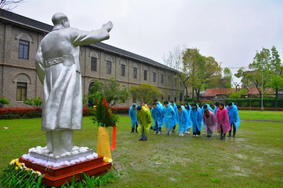 仲春时节,武汉阴雨绵绵。学员们冒雨来到毛泽东同志主办的中央农民运动讲习所旧址,认真聆听老党员讲述在此期间的历史故事,并重温了入党、入团誓词。面对毛主席雕像,学员们诚鞠三躬,深切缅怀。