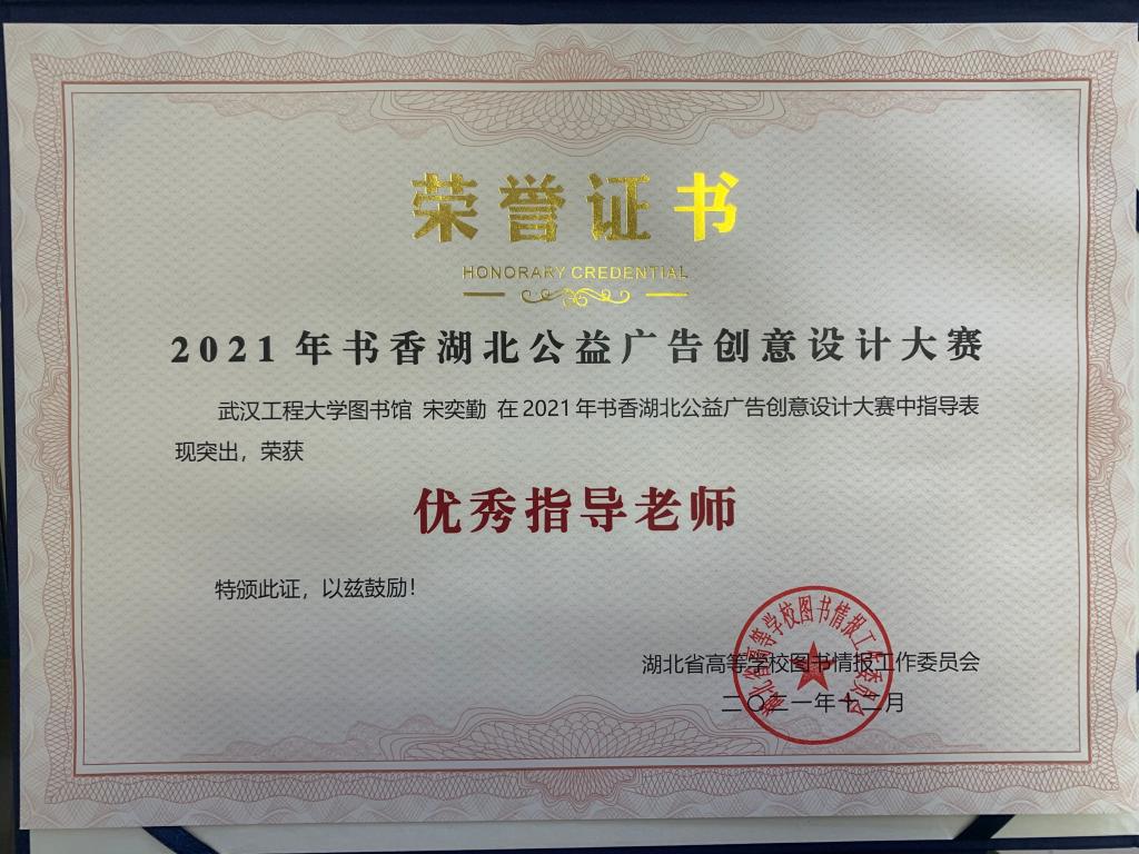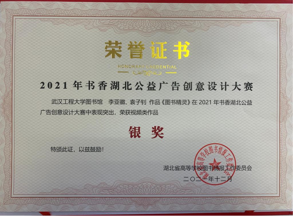 本网讯(通讯员 毛竞永)日前,由湖北省图书馆学会、湖北省高等学校图书情报工作委员会主办,湖北省图书馆、武汉大学图书馆承办的2021年书香湖北公益广告创意设计大赛圆满落幕。学校图书馆联合艺术设计学院、邮电信息与工程学院等单位参加了此次大赛。经评审,我校艺术学院学生李亚徽、袁子钊同学作品《图书精灵》获视频类设计“银奖”;陈可馨同学作品《倾诉·瞻仰·传承》获策划类设计“优秀奖”;刘子琛同学作品《奋斗-无畏》、《蝶》,蒋佳龙同学作品《阅读森林》,刘勇灿、蒋佳龙同学作品《书之行》分获平面类设计“优秀奖”;李亚徽、袁子钊同学作品《图书馆·静谧》获摄影类设计“优秀奖”。我校图书馆获“创意设计示范基地”、“优秀组织单位”称号;我校教师宋奕勤、张媛、郑伶俐分别获“优秀指导老师”荣誉,叶仙娥、毛竞永分别获“优秀组织个人”荣誉。