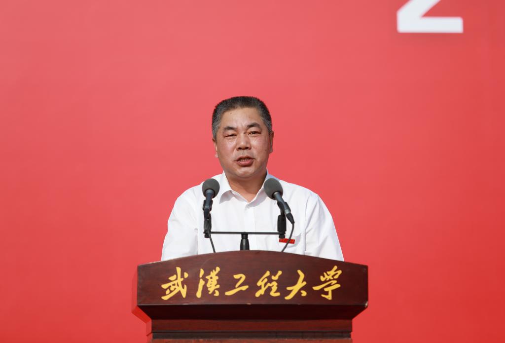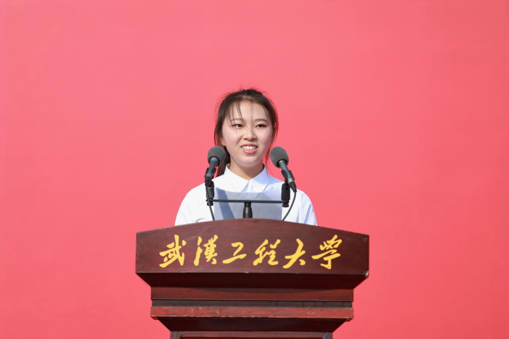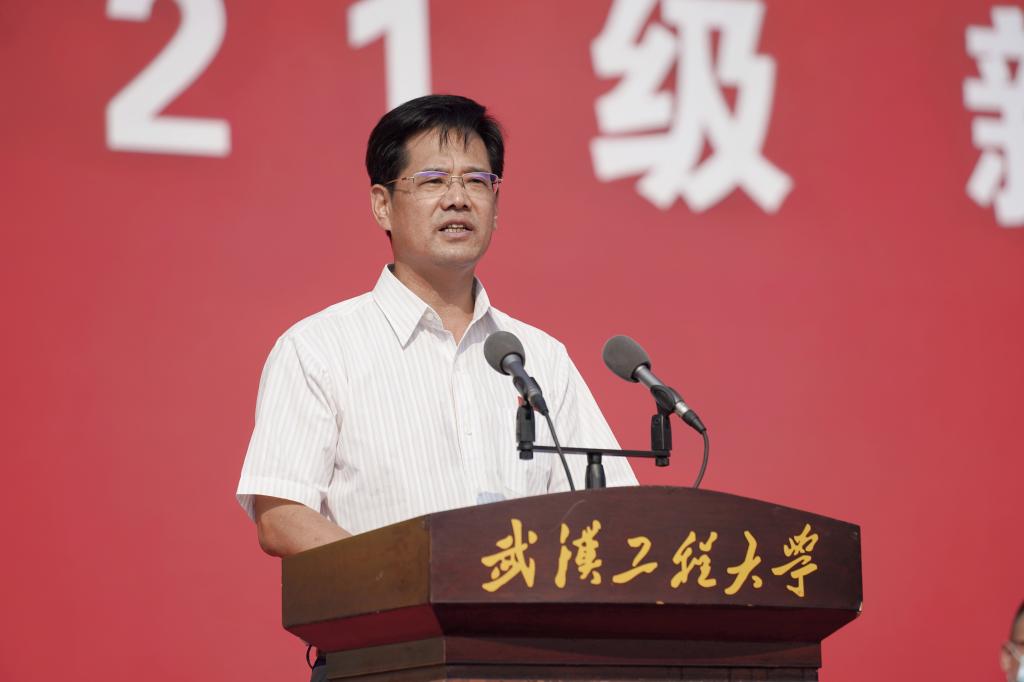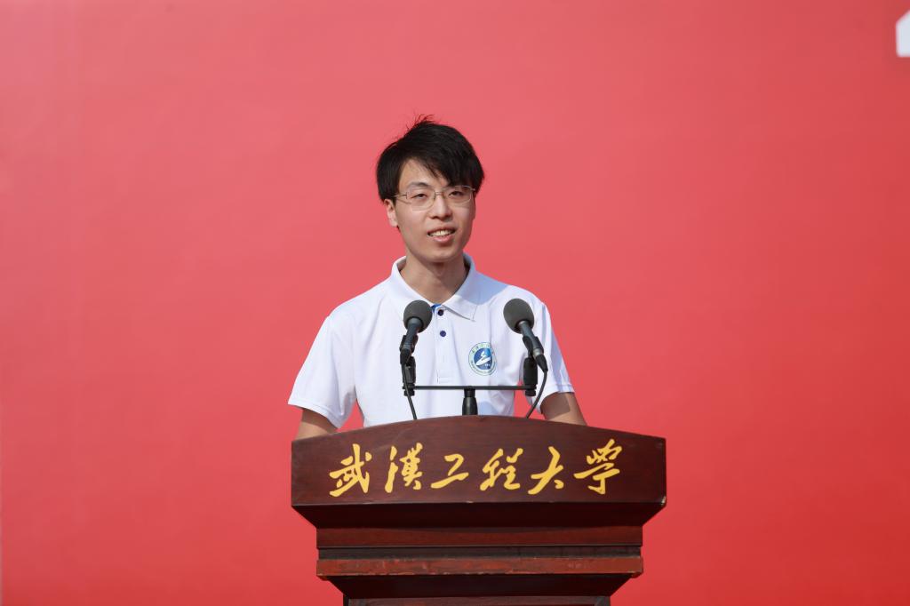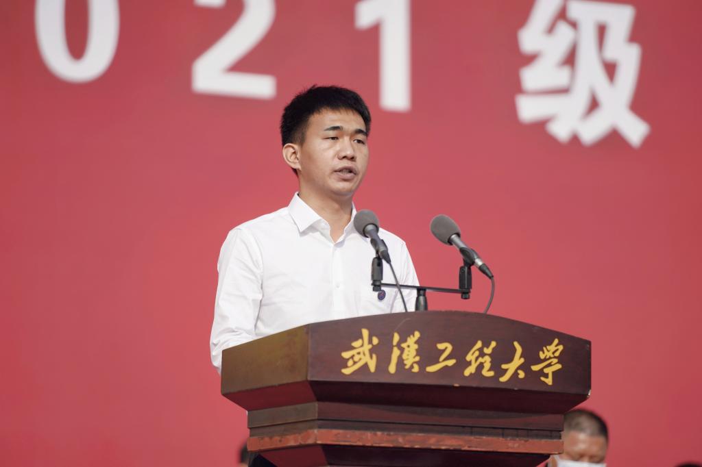 教师代表,2021年“荆楚好老师”获得者、机电工程学院喻九阳教授以自己求知圆梦、立德修业的人生体会向2021级新生分享了四点感悟:一要博学善思。学而思,学问方能进步。思而行,行而力,事业方能成功。二要立德修身。秉持先天下之忧而忧,后天下之乐而乐的高尚情操,树立为祖国为人民永久奋斗、赤诚奉献的坚定理想。三要求真务实。保持对知识的追求,求得真学问、练就真本领,在攀登知识高峰中追求卓越,在肩负时代重任时敢为人先。四要致知笃行。做到格物明理、致知笃行,学以致用、知行合一。扎扎实实做事,踏踏实实做人。喻教授以激情满满的三声“加油”向同学们发出了号召。三声加油饱含深情彰显大师风范;三声回应振聋发聩体现学子担当。