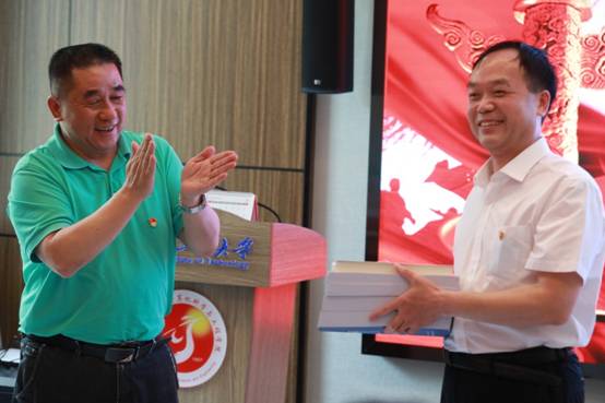 省财政厅政府采购处一级调研员杜春林向学校赠送政府采购制度汇编。