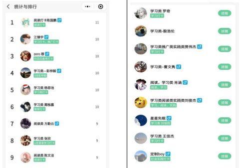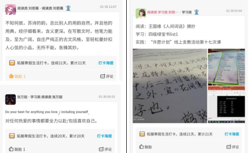 书籍是人类进步的阶梯,阅读给人以前行的动力。参与到阅读类打卡的同学们,自发成立阅读督促小组,每天在自己小组内交流阅读的感想,分享自己的阅读心得,在相互交流中不断提升自己。