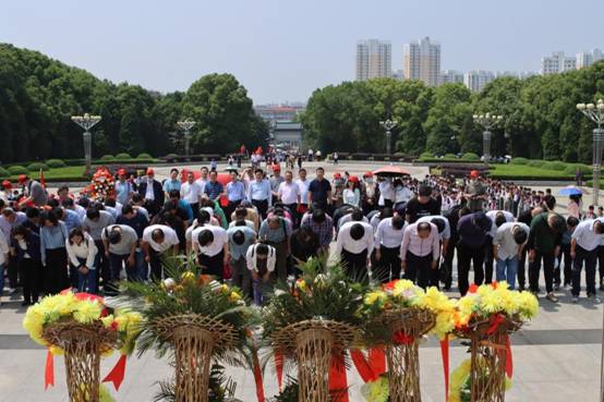 在黄麻起义和鄂豫皖苏区纪念园,校党委副书记郑丹凤在纪念碑前向革命烈士敬献花篮,全体党员干部垂手肃立、深沉默哀,深切缅怀革命先烈的丰功伟绩。在机关党委书记郭昕的带领下,全体党员干部面向党旗和纪念碑,庄严宣誓,重温入党誓词。随后全体党员瞻仰黄麻起义和鄂豫皖苏区革命烈士纪念碑,并参观了黄麻起义和鄂豫皖苏区革命历史纪念馆。