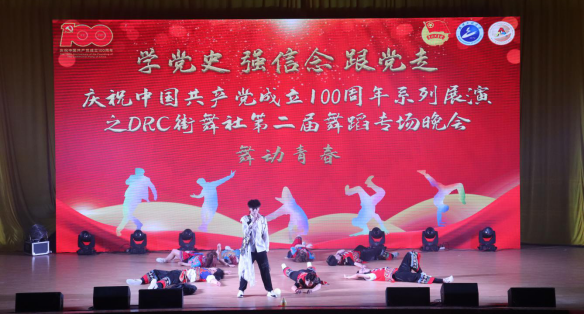 本网讯(通讯员 张钟文)为庆祝中国共产党成立100周年,营造浓厚的校园文化氛围,展现我校学子积极向上的青春风貌,5月13日晚,学工部、研工部、校团委联合主办的庆祝中国共产党成立100周年系列展演之DRC街舞专场晚会在流芳校区大礼堂成功举行。