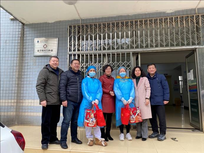 郑丹凤带领大家看望两校区医院坚守岗位的医护人员。郑丹凤强调,目前正是新型冠状病毒肺炎重要的防护时期,要不折不扣地落实新冠疫情防控各项要求,坚守岗位,尽职尽责,履行白衣天使治病救人的天职,也要注意医护人员的自身安全防护。郑丹凤转达学校党政对值守防疫一线医护人员的关心和惦念。