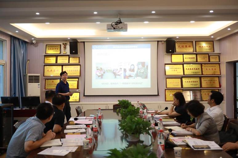 王威向与会领导嘉宾汇报我校2021年示范点工作情况及“五送”方案的制定和落实情况。