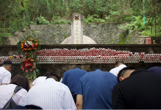 在“列宁”小学和“红田”惨案遗址,讲解员声情并茂地为大家讲解了以肖国清等为代表的不同年龄层次的共产党人如何用生命诠释信仰、如何用忠骨构筑大别山精神、如何用鲜血换取今天幸福生活的英雄事迹。全体党员备受震撼和鼓舞,在现场齐声唱响了《没有共产党就没有新中国》。