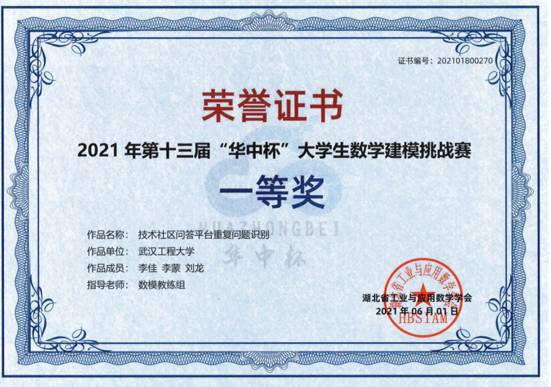 “华中杯”大学生数学建模挑战赛系原华中地区大学生数学建模邀请赛,是湖北省工业与应用数学学会主办的面向全国大学生的群众性科技活动,该赛事定位于全国大学生数学建模竞赛预演,旨在激励学生学习数学的积极性,提高学生建立数学模型和运用计算机技术解决实际问题的综合能力,目前已连续举办12届,2021年更名为大学生数学建模挑战赛。