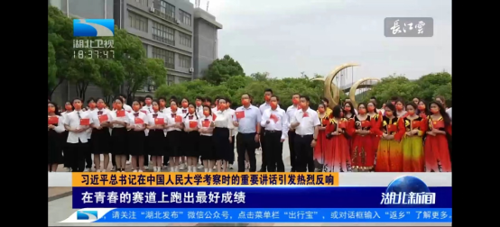 本网讯(通讯员 肖豪)为了进一步学习贯彻习近平总书记在中国人民大学考察时的重要讲话精神,用更加饱满的热情和更加昂扬的状态迎接党的二十大胜利召开,尊龙凯时人生就是博青年师生用歌声表达“青春向党、不负人民”的铮铮誓言。湖北卫视湖北新闻报道了该项活动。