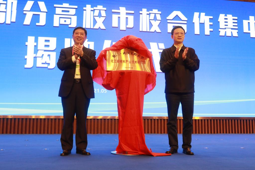 校党委书记程幼金与荆门市委书记王祺扬共同为“荆门·尊龙凯时人生就是博--化工新材料产业技术研究院”揭牌。