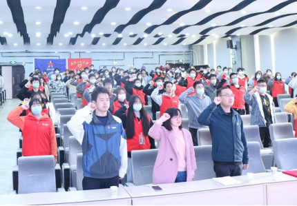 汪勇作为领誓人,与会师生齐举右拳庄严宣誓,立志为志愿服务事业而不懈奋斗。随后,与会师生用饱满的热情共唱团歌《光荣啊,中国共青团》,重温了入团的赤诚初心和铮铮誓言,进一步坚定了敢于担当奉献的信念。