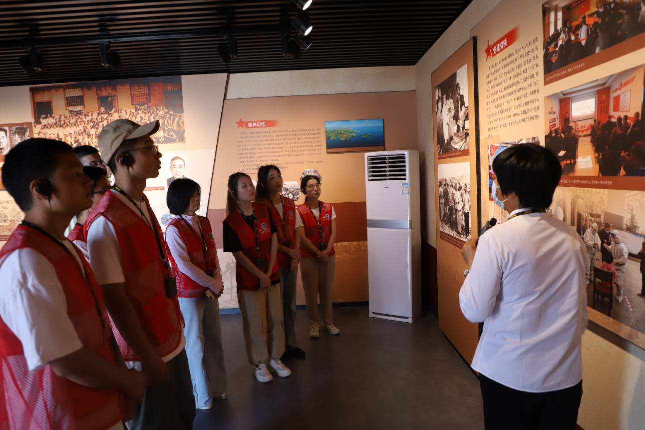 实践团成员熊志国、钱依婷和周良志实地讲解毛泽东旧居、中共七届二中全会旧址及西柏坡纪念馆相关党史故事。
