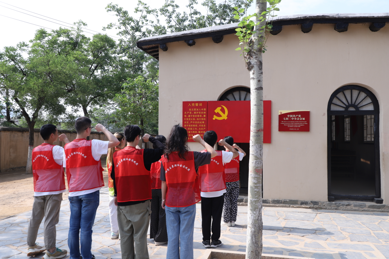 实践团全体成员在中共七届二中全会会址前庄严宣誓,表达了作为党员的责任与担当,重温了入党时的拳拳初心,许下了对党忠诚的坚定承诺。