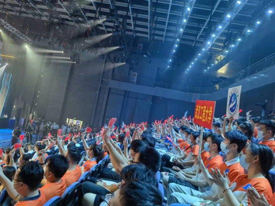 决赛现场,王存文校长作为省属高校唯一校长代表以视频的方式为参赛选手和广大积极投身创新创业的高校学子送上了祝福和期望。我校也组织了26名老师和同学代表参加了现场比赛的录制,同学们着装整齐,统一口号,充分展示出了工大学子的良好精神风貌。