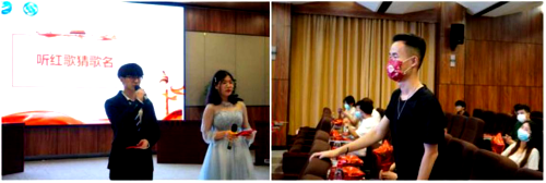 在互动环节,现场观众积极参与,开启了“听歌识曲”的技能。红歌不仅唤起了内心的红色记忆,还激发了学生们爱党、爱国、爱团的热情,在红歌中回味历史、继承并发扬传统,汲取继续前进的智慧与力量。