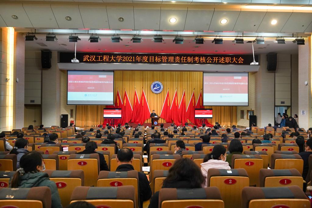 本网讯(通讯员 刘静)2022年1月7日、8日,学校在流芳校区四教多功能报告厅召开2021年度目标管理责任制考核公开述职大会。全体在校校领导参加大会。会议由发展规划处处长袁正明主持。