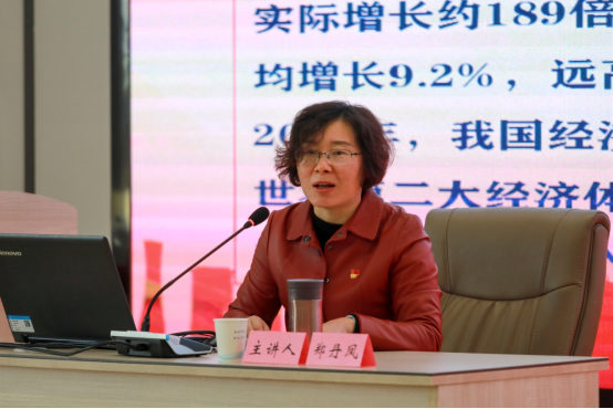 11月10日上午,校“党的创新理论”宣讲团成员、党史学习教育第三指导督查组组长、校党委副书记郑丹凤在文科楼413为机关党委中层干部,材料、法商、环生学院党委委员和班子成员宣讲习近平总书记“七一”重要讲话精神和学校第三次党代会精神。郑丹凤对“七一”重要讲话精神进行了深入剖析和延展解读,深刻阐释了党的“四个伟大成就”、“三个世界奇迹”、三个深刻改变”以及以史为鉴开创未来的“九个必须”,高度概括了伟大的建党精神。同时,结合学校事业发展实际,深入解读了学校第三次党代会精神的核心要义,为全体师生提出了明确的要求和奋斗的目标。