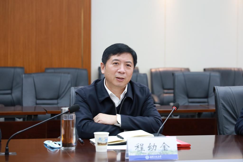程幼金对朱双全一行的到来表示热烈欢迎,对长期以来关心和支持我校建设和发展的湖北鼎龙控股股份有限公司的各位企业家表示感谢。程幼金指出,湖北鼎龙控股股份有限公司坚持“面向国际高端、坚持科技创新、争创行业一流”的技术发展战略,依托科技创新和产业整合,已发展成为一家实力雄厚的国家高新技术企业。公司在半导体材料、新型显示材料、新能源材料等方面的研究和学校化工、材料、控制与智能制造等学科专业的优势契合度很高,希望校企双方以本次座谈交流为契机,积极搭建交流合作平台,深化在科技创新、人才培养和成果转化方面的交流合作,充分发挥各自的优势,加强产学研用深度融合,共同打造人才链、创新链、产业链,在推进科技强国、科技强省战略中为湖北的经济社会高质量发展和国家科技教育事业发展作出新的更大贡献。
