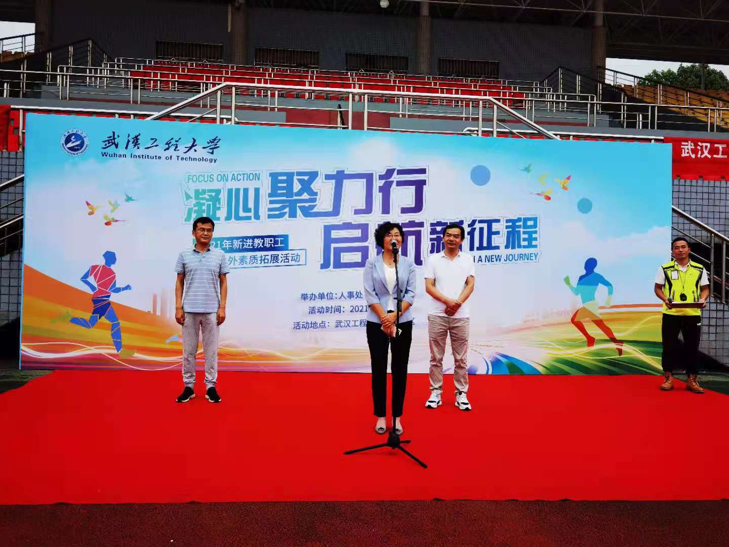 本网讯(通讯员 张峻玮 朱雪洁)为了更好地帮助新入职教职工顺利实现角色转换,增强凝聚力、团队意识、执行力与使命感,培养爱岗敬业、勇于奉献的精神,搭建相互沟通和交流的平台。8月28日下午,我校2021年新入职教职工岗前培训班素质拓展活动暨闭幕仪式在流芳校区体育场顺利举行。学校党委副书记郑丹凤,党委教师工作部部长、人事处处长、人才工作办公室主任鲁晓君,教师发展中心主任孙先明等一行参加了此次活动。