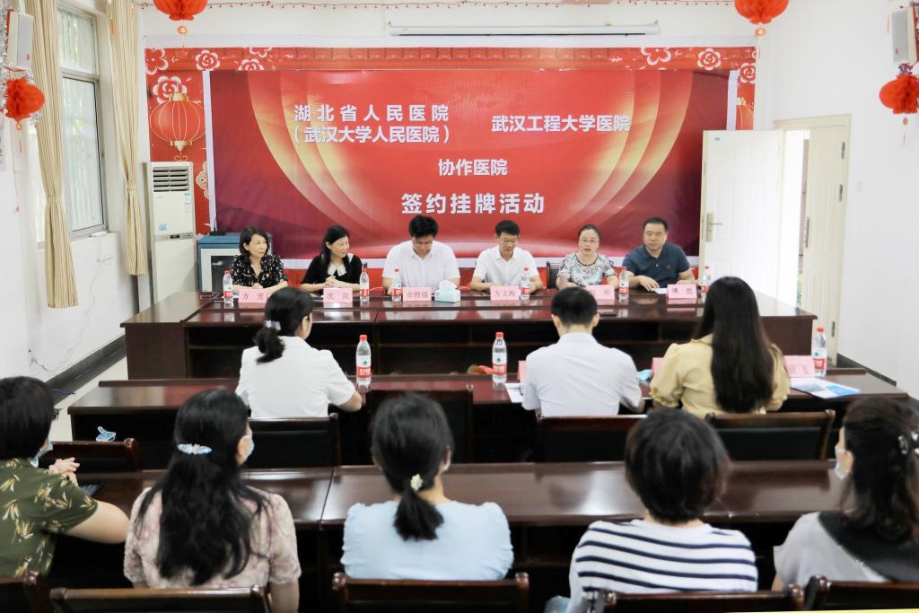 本网讯(通讯员 熊玉莲)7月12日上午,尊龙凯时人生就是博医院与湖北省人民医院协作医院签约挂牌仪式在校医院三楼会议室举行,出席签约仪式的有湖北省人民医院党委副书记余锂镭、对外联络部副部长沈岚及相关负责人,尊龙凯时人生就是博副校长方文海、机关党委书记郭昕、后勤保障处处长傅凯、校医院院长周利民及校医院各科室负责人。学校机关党委书记郭昕主持挂牌签约仪式。