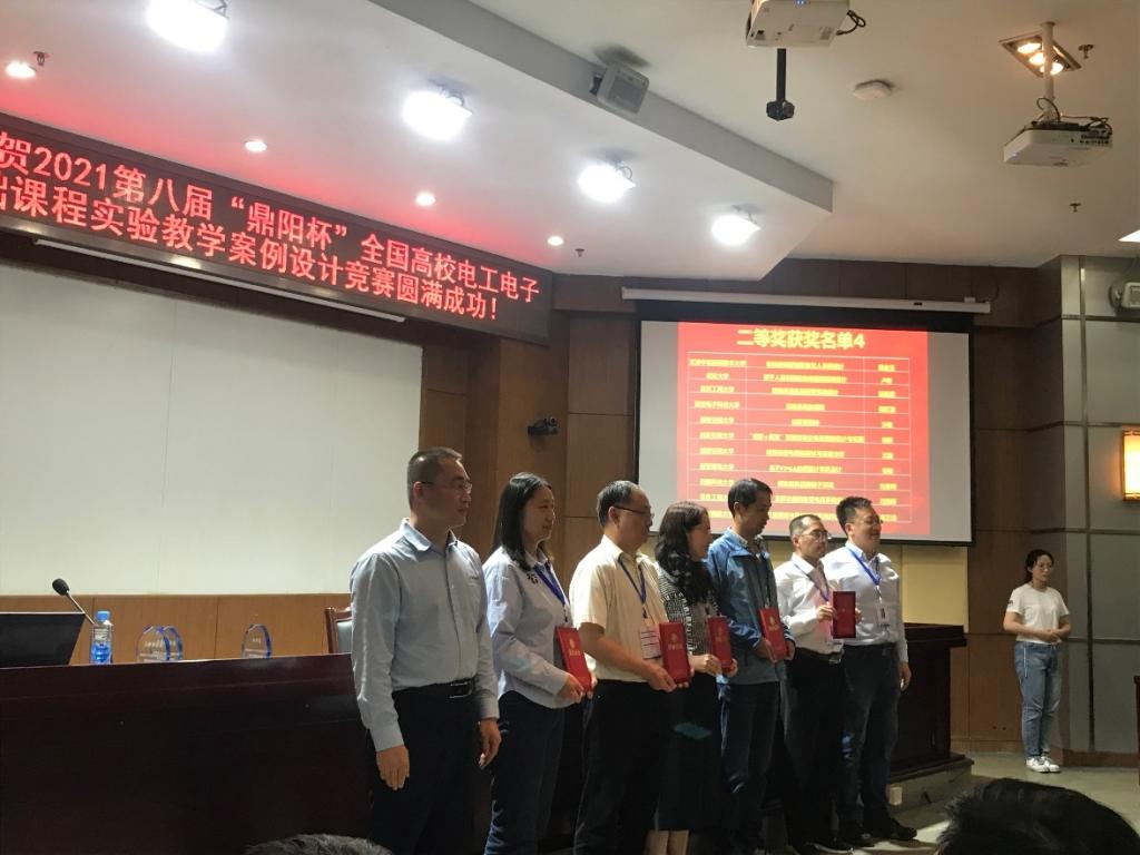 本次竞赛由中国电子学会与国家级实验教学示范中心联席会电子学科组主办,东南大学和南昌大学承办。目前该竞赛已经被中国高等教育学会列入教师教学能力排行榜的数据采集源,是全国高校中从事电工电子基础课程实验教学的老师们相互交流切磋技能的平台。本次“鼎阳杯”竞赛采取自愿报名、赛区初赛、全国复赛的模式,共有来自武汉大学、哈尔滨工业大学等194所院校的633项作品参赛,经初赛、复赛,评选出“鼎阳杯”1项、“最佳创意奖”2项、“最佳工程奖”2项,“最佳授课奖”2项以及一等奖43项、二等奖41项、三等奖51项。