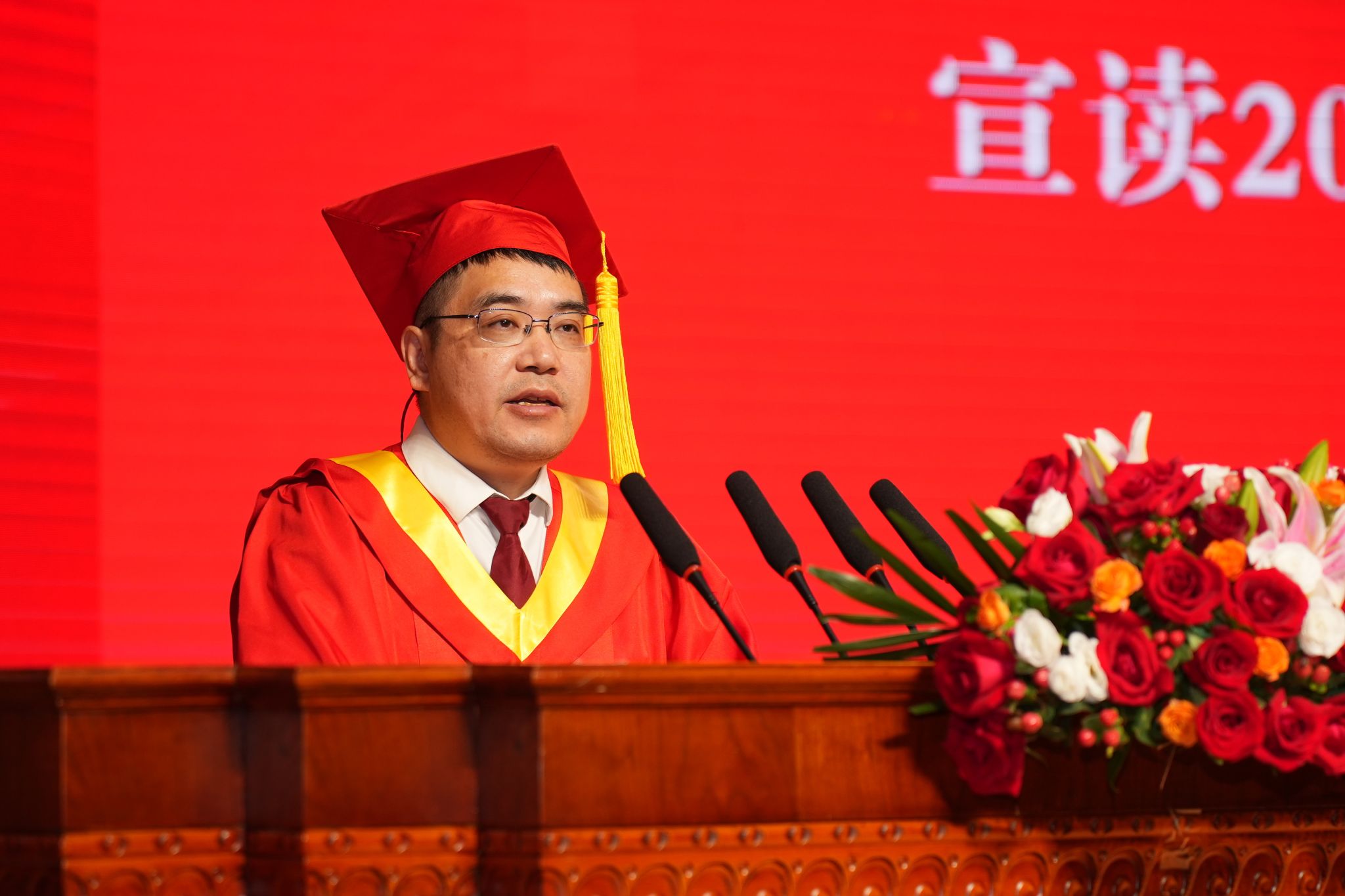 校党委书记汪伟代表学校师生员工向即将告别母校、奔赴未来的1836名毕业研究生表示热烈的祝贺。他寄语2024届全体毕业研究生: